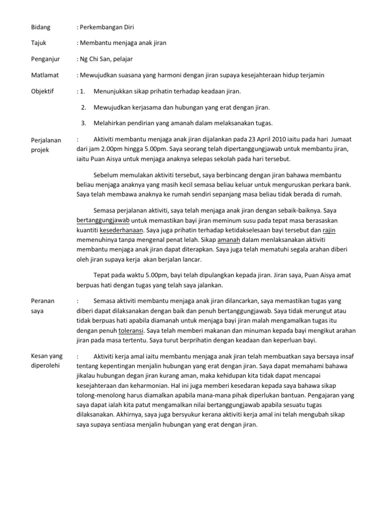 Contoh Laporan Kerja Amal Contoh 1 Contoh Sahaja Jangan Tiru Bidang Perkembangan Diri Tajuk Membantu Menjaga Anak Jiran Penganjur Ah Beng Course Hero