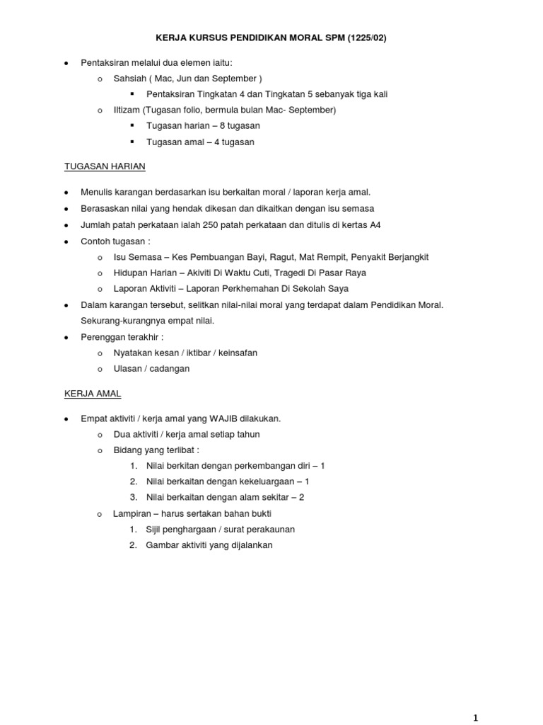 Folio Karangan 1 Doc Karangan 1 Kerja Amal 1 Bp 1 Perkembangan Diri Tajuk Mengemas Bilik Pada 1 Julai Jam 3 00 Petang Saya Telah Meluangkan Dan Course Hero from. Ilmu yang baik akan membekas ke luar diri individu dan orang lain. Kerja kursus pendidikan moral spm 2011.