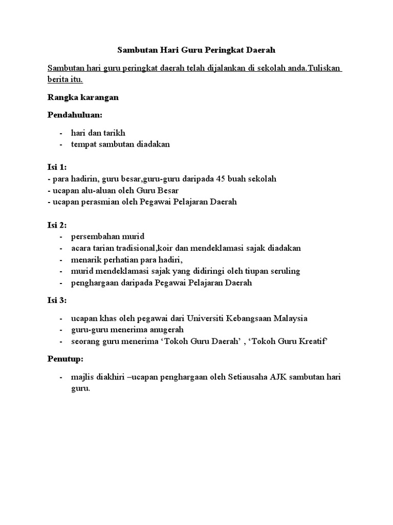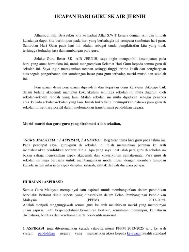 Teks Ucapan Ydp Sempena Majlis Sambutan Hari Guru Peringkat Sekolah Pdf